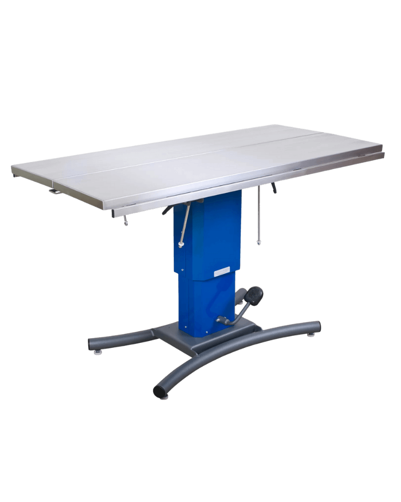 Veterinary professionals can adjust the v-top angle up to 45 degrees to accommodate a wide range of procedures. The table top is also capable of longitudinal tilt up to 90 degrees. The table base comes equipped with ( electric or hydraulic optional ) height adjustment and trendelenburg positioning, making it easy for clinicians to have prime access to the operative field.