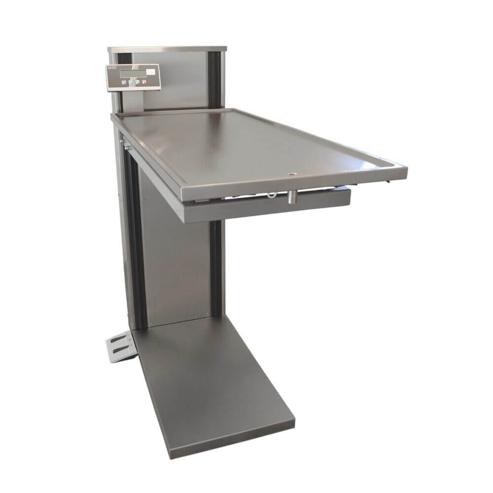 Animal weighing 0-220 lbs in 0.1 lbs steps. Battery powered with (6AA batteries not included). Automatic shutdown after 3 minutes.
