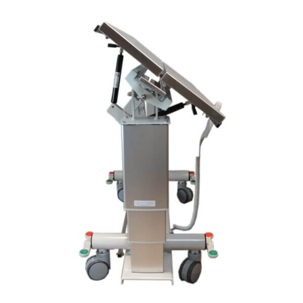 The Panno-med OP Veterinary Surgical Table is in use in many major animal health emergency, critical care, university, and animal research facilities around the globe. This unique platform has remote-controlled height adjustment from 33.5″ – 45″, to allow veterinary surgeons to operate ergonomically sitting or standing. 15 power-operated positions and a sliding X-Ray translucent top make this heavy-duty surgical table ideal for veterinary surgery and laparoscopy. With optional armrests, the platform is optimized for veterinary ophthalmology and neurosurgery-related procedures.