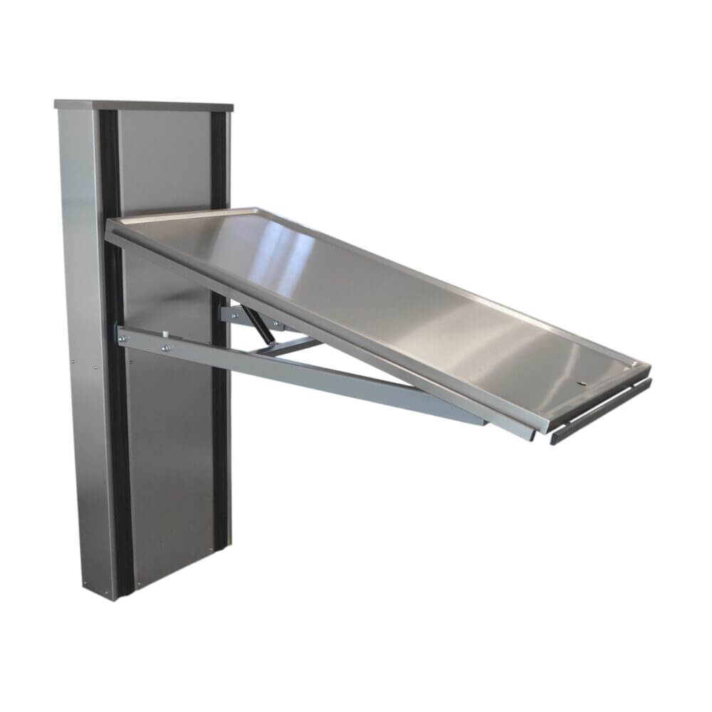 Tilting Top Dimensions: L52 inches x W23.6 inches (25.2 inches incl. OP rails) x H3.9 inches. Smooth one-hand gas spring tilting to 12°. Top plate can be either stainless steel or synthetic top. Compatible as fixed top only.